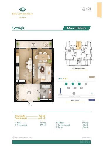 Etibarlı, komfortlu və təhlükəsiz həyat sizə düşündüyünüzdən daha yaxındır. 9 hektarlıq ərazidə inşa edilən “Baku City Residence Olimpik” yaşayış kompleksi “Koroğlu” metrostansiyasına və əsas nəqliyyat qovşaqlarına yaxınlığı ilə seçilir. Kompleks 4 giriş-çıxış yoluna malik, təhlükəsiz, yaşayış məkanından kənar və mənzil sayına uyğun 2 mərtəbəli yeraltı avtodayanacağı ilə sizi parkinq qayğılarından azad edir. Keyfiyyətli tikinti materialları ilə inşa edilən “Baku City Residence Olimpik” sağlam və təhlükəsiz 16 mərtəbəli yaşayış binalarında uzunömürlü və dayanıqlı mənzillər təklif edir. 4,5 hektar sahəni əhatə edən geniş yaşıl ərazi, parklar və Böyük Şor gölünün gözəl mənzərəsi ilə kompleks sizin üçün yaşıllığın əhatəsində həyatı təmin edir. Kompleksə daxil olan açıq havada futbol, basketbol və digər idman meydançaları, velosiped zolağı, eləcə də qapalı fitnes sahəsi sizə və ailə üzvlərinizə sağlam həyat tərzini bəxş edəcək. Burada fəaliyyət göstərəcək məktəb və təhlükəsiz daxili yollar uşaqlarınızın etibarlı və güvənilən gələcəyinin təminatçısıdır. Bakı şəhərinin genişlənmə perspektivlərinə uyğun şəkildə və yaxın gələcəkdə mərkəzə çevriləcək ərazidə inşa edilən kompleks sizə etibarlı və güvənilən daimi investisiya imkanları vəd edir. “Baku City Residence Olimpik” – həyatı dinamik, sürətli və rahat yaşamağı seçənlər üçün İnfrastruktur: • İctimai nəqliyyata yaxınlıq • “Koroğlu” metrostansiyası, • Dərnəgül şossesi, • Heydər Əliyev prospekti, • Beynəlxalq Hava limanına rahat yol • Zəngin idman infrastrukturu • Bakı Olimpiya Stadionu, • Milli Gimnastika Arenası, • “ASK Arena” Əlverişli məkan: • “Bravo” hipermarket, • ASAN Xidmət, • “Yeni Klinika”, • dövlət və özəl məktəb və uşaq bağçaları İstirahət və əyləncə: • Böyükşor bulvarı, • Heydər Əliyev Mərkəzi