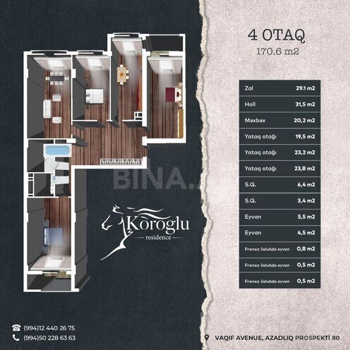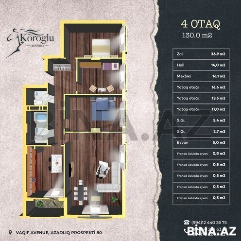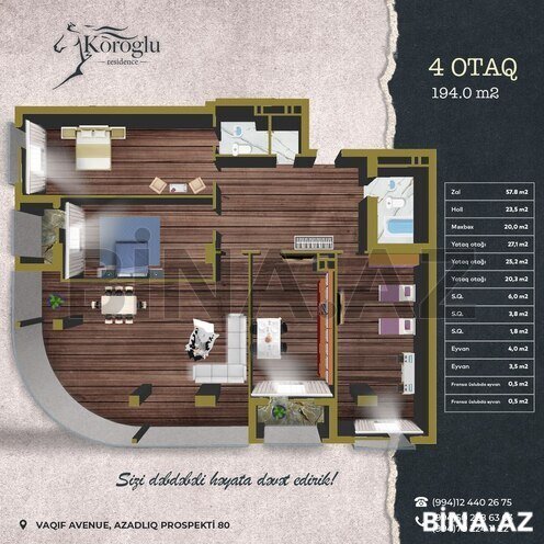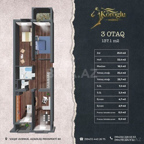 “Winter City Group” haqqında “Winter City Group” şirkəti 10 ildən artıqdır ki, tikinti sahəsində fəaliyyət göstərir və beynəlxalq standartlara cavab verən premium klass binalar inşa edir. Biz şəhərin memarlığına uyğun, sakinlər üçün tam rahat və təhlükəsiz yaşayış komplekslərini təqdim edirik. Tamamlanmış və tikintisi davam edən layihələrimiz gördüyümüz yüksək səviyyəli işin bariz nümunəsidir. “Koroğlu Residence” haqqında Gözoxşayan və dəbdəbəli “Koroğlu Residence” yaşayış kompleksi hər zaman öz müştərilərini təəcübləndirməyə və məmnun etməyə nail olmuşdur. Siz də vaxt itirmədən, dərhal bizə müraciət edin və işinizi peşəkarlara həvalə edin. Şirkətimiz tikintidə istifadə olunan bütün materiallara və ümümi tikinti prosesinə tam zəmanət verir. Kompleks ekoloji cəhətdən təmiz ərazidə yerləşir, buradan həm dənizə, həm də şəhərə və şəhərətrafına möhtəşəm mənzərə açılır. Sakinlərimizin rahatlığını düşünərək kompleksimizdə ailəvi şəkildə komfortlu həyat sürmək üçün hər cür şərait yaradılmışdır. Yerləşmə “Koroğlu Residence” premium yaşayış kompleksi Koroğlu və Zorge parkları ilə əhatə olunan, yaşıllıq ərazidə yerləşir. Kompleks Dədə Qorqud parkı və ADA Universitetindən 7 dəqiqəlik, Nəsimi Rayon İcra Hakimiyyəti və Heydər Əliyev adına Müasir Təhsil Kompleksindən isə 5 dəqiqəlik piyada məsafəsində inşa edilir. Mənzillər - 1 otaqlı – 55 m²-dən; - 2 otaqlı – 60 m²-dən; - 3 otaqlı – 113,8 m²-dən; - 4 otaqlı – 130 m²-dən; - Mansard mənzillər mövcuddur.