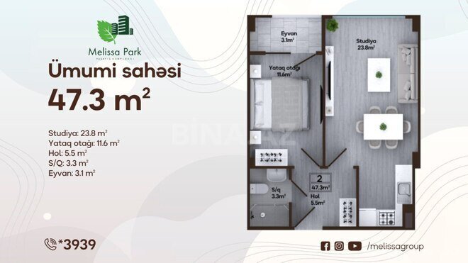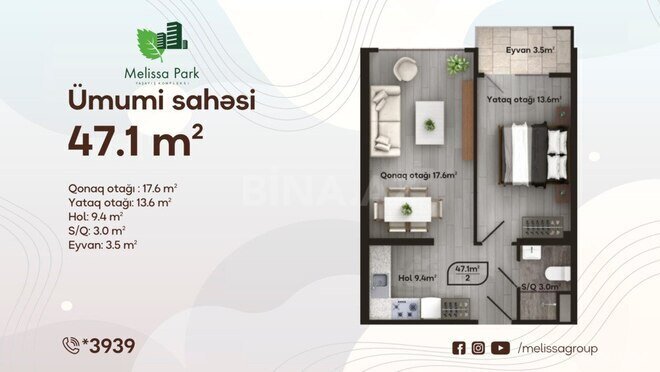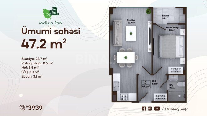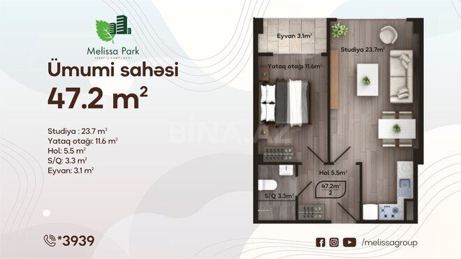 Melissa Park gözoxşayan infrastrukturu və ərazisinin landşaft dizaynı olan çoxbloklu ekonom yaşayış kompleksidir. Şəhərin əsas infrastruktur qovşaqlarının və “20 Yanvar” m/st-nın yaxınlığında, H. Zərdabi prospektində yerləşir. 22 ildən çox təcrübənin bəhrəsi olan, 7 hektar ərazini əhatə edən, yaşıl şəhərcik sayılan “Melissa Park” yaşayış kompleksinin 70%-ni geniş həyətyanı sahəsi olan yaşıl park təşkil edir. Mənzillərimiz: 1 otaqlı: 30,4 m² 2 otaqlı: 47,1-51,6 m² 3 otaqlı: 95,5-96,6 m² Mənzilləri nağd və 20 illik sərfəli daxili ipoteka ilə əldə etmək mümkündür.